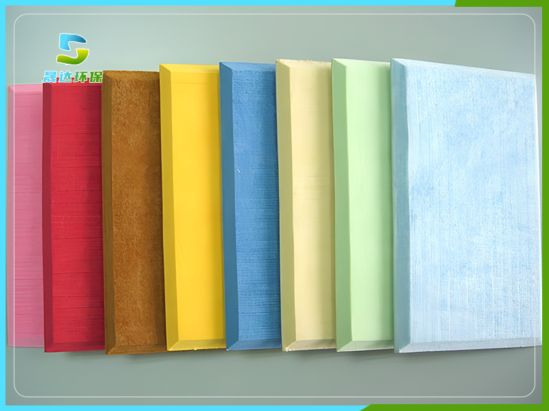 聚脂纖維吸音板由100%聚酯纖維為原料,經過熱壓合以繭棉狀制成的。利用熱處理公法來實現密度多樣確保通風性,使之成為吸音材料、飾面材料、隔熱材料中的優 秀產品。本產品接近自然,對人體無害,能創造一個安靜舒適的工作生活空間。裝飾性強,施工簡單,能通過木工機具,變換多種造型。色彩花型豐富,可直接做裝飾面材料,還可根據不同的需要做各類涂料噴涂,可代替以往層板加海綿或玻璃纖維的傳統軟包布藝。